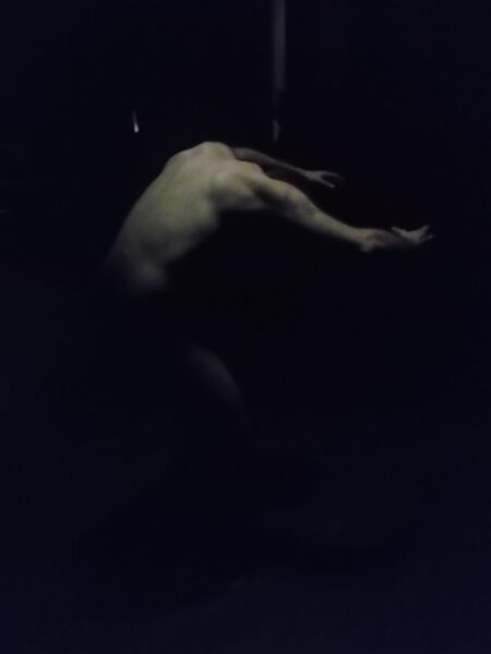 Deretter gled forestillingen over i folkedans, denne gangen uten publikum. Jeg må innrømme at min egen kjennskap til folkedans er begrenset, men at springar var en av dansene, er jeg ganske sikker på. Å se folkedans utført av nakne dansere var noe helt annet enn å se bunadskledde par fremføre dansen. Fraværet av drakter fjernet det dekorative og fremhevet i stedet kroppens rytme og muskelspill – bevegelsens ærlighet. En bunad kan skjule små feil, men i naken dans er alt synlig. Ikke at det var mange feil å se – dansen fremsto rå, intim og usedvanlig ekte.