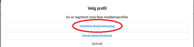 Du er nå logget inn og ser startsiden for den valgte foreningen.